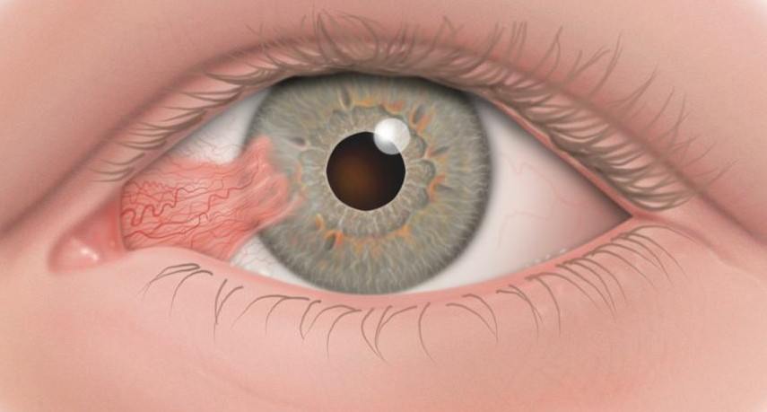 Los síntomas dependen de la magnitud de la lesión, por lo que cuanto más crecen, más molestias (como lagrimeo, enrojecimiento o sensación de cuerpo extraño) pueden provocar en la superficie del ojo. En los casos más graves, la visión puede correr peligro, ya que recubre una zona más amplia de la córnea.